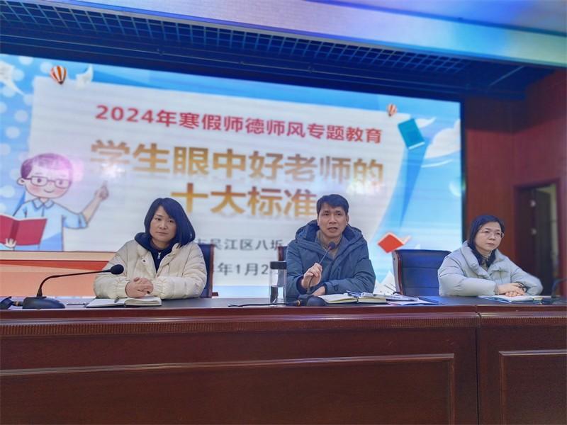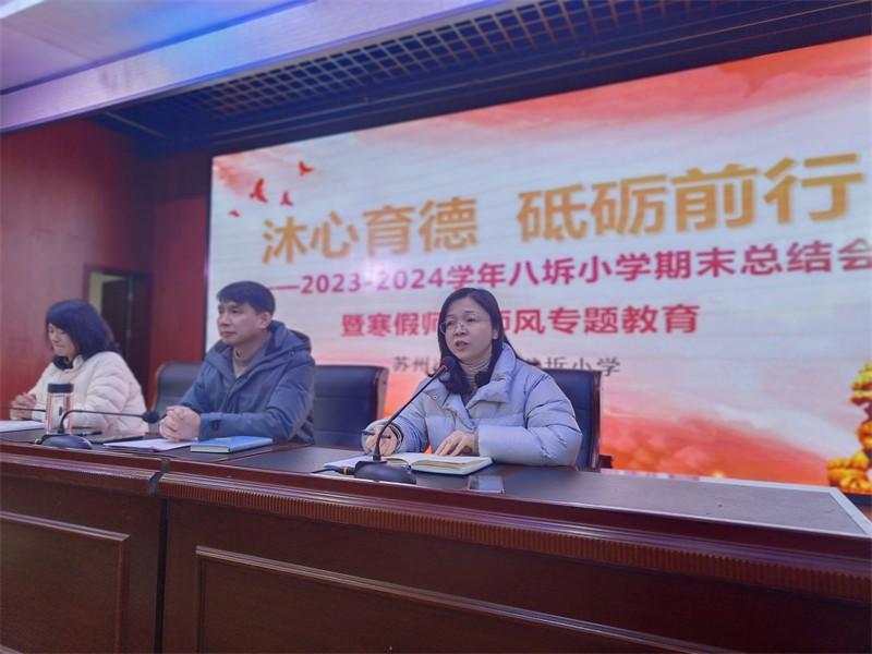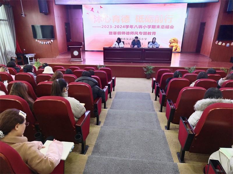 1月29日上午,吴江区八坼小学全体教师集中二楼报告厅组织召开2023-2024学年第一学期期末总结会暨寒假师德师风专题教育,本次会议由石菊娥副校长主持。