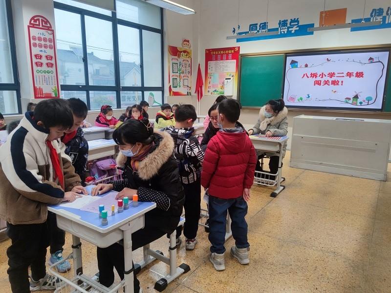 二年级数学同样设置了一个关卡,即“口算小能手”。闯关结束,胜利的笑容挂在每位孩子的小脸蛋上,欢声笑语洋溢在校园里。孩子们收获的不仅仅是一枚印章,更是对知识的向往。