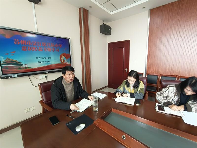 3月8日下午,八坼小学组织全体行政人员集中三楼会议室开展意识形态专题学习,由学校党支部书记、校长刘新平主持,学校意识形态工作小组全体成员全程参与。
