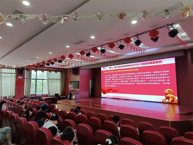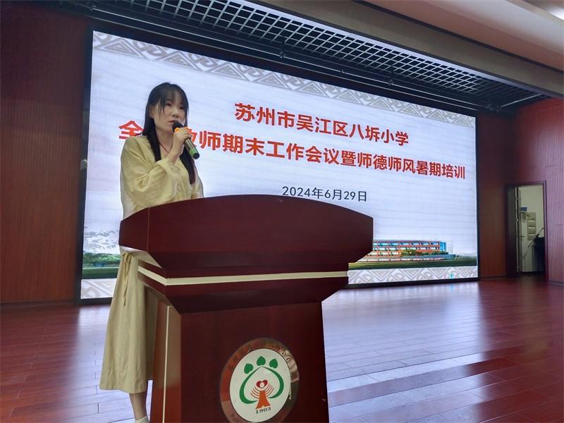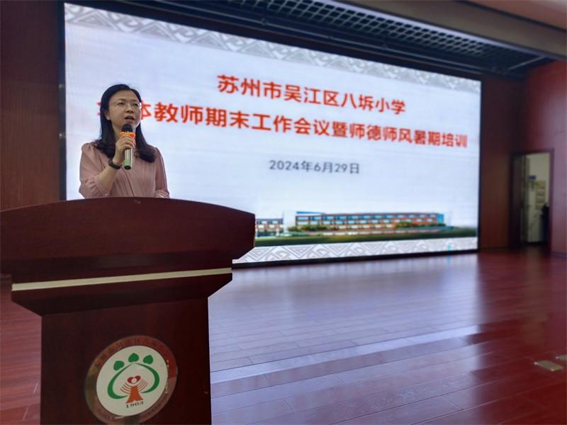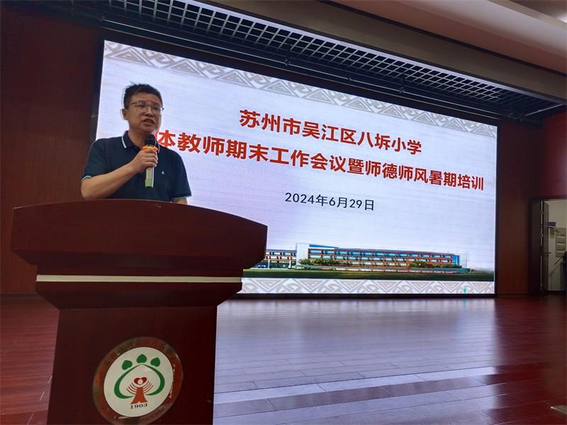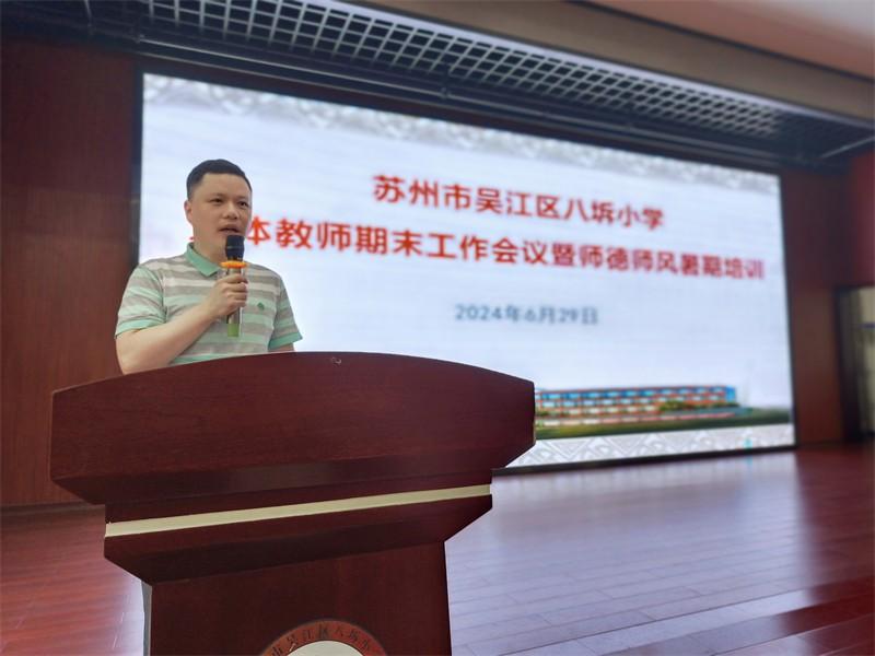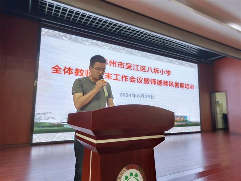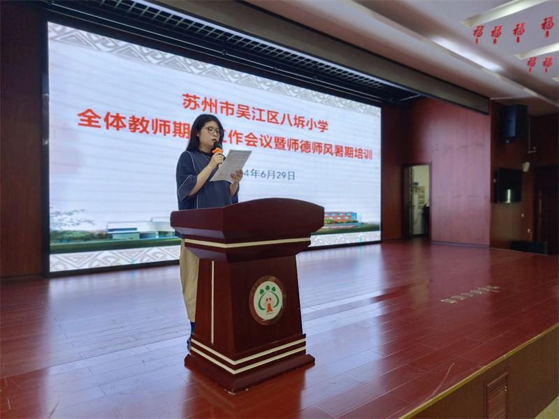 6月29日上午,为总结本学期的教育教学工作,进一步加强学校教师师德师风建设,切实提升教师职业道德素养,营造风清气正的教育环境,八坼小学全体教师集中二楼报告厅召开2023—2024学年第二学期期末会议暨师德师风暑期培训,由石菊娥副校长主持。