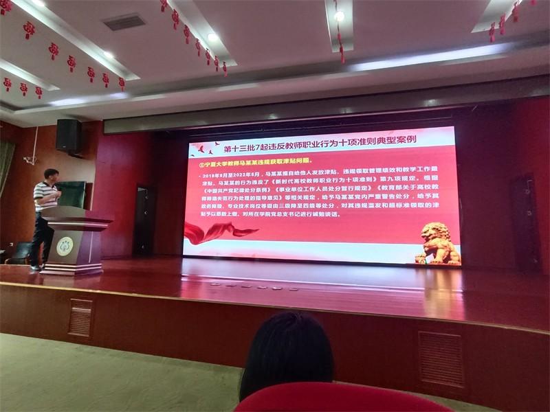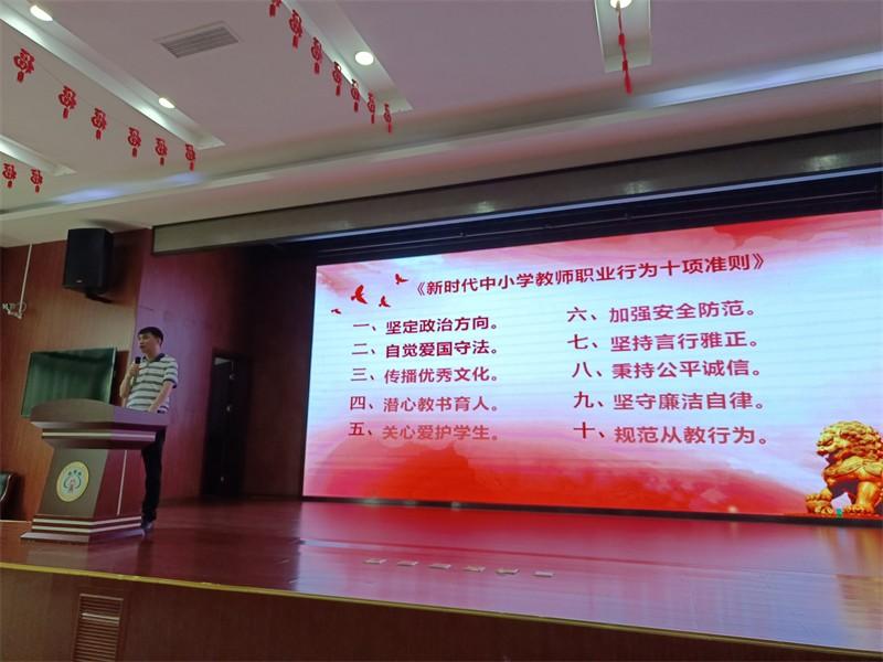 第二项议程,由学校党支部书记、校长刘新平组织全体教师开展师德师风暑期培训暨反面典型案例警示教育。刘校长首先代表学校向一学期以来兢兢业业辛勤工作的各位老师致以真诚的感谢。随后,他针对老师们的假期生活提出一些建议。第一,享受假期生活的同时也要注重学习反思,谋划好个人专业发展。第二,全体教职工严格遵守《关于进一步规范全区教育系统教师网络行为的通知》、《新时代中小学教师职业行为十项准则》。净化朋友圈,规范网络行为,弘扬宣传正能量,文明上网,杜绝在各网络平台发表不当言论,特别是涉政、涉校、涉师等敏感热点话题,高度重视意识形态问题。假期中严禁有偿家教,培训机构兼职等违反师德行为一经查实,将按规定严肃处理。第三,外出苏州大市要向办公室吴红英副主任报备,“8小时以外”加强监管。不赌博,不酗酒,酒后不开车,对照教师职业行为十项准则注意自身形象,尤其是自己的言行。加强对新入职教职工的查询。第四,暑期外出旅游尽量不发朋友圈,谢绝谢师宴。第五,班级群对学生的暑假生活与自主学习要作正面的提示与引导,包括安全教育、防溺水教育、心理健康教育等。第六,暑期各类培训要准时参加,无特殊情况不得请假,不得迟到早退,并认真完成相关任务,各科室的材料也及时归档保存。第七,暑期职称等人事工作要按照要求细致地做好申报。另外如有意向援疆支教的老师可以向校长室报名。第八,学校绩效考核结果等请关注学校公示栏,发现问题及时反馈调整。刘校长通过组织大家认真学习区教育局《2024年暑期师德师风建设提醒函》,提醒大家坚守教育初心,拒绝有偿补课,恪守职业道德,严守师德底线,利用暑期继续加强自我修养,提升专业素养,加强对坼小教师的教育、管理和监督,确保各项要求落到实处。最后,刘校长带领全体教师重温《新时代中小学教师职业行为十项准则》以及《中小学教师违反职业道德行为处理办法》,并利用中华人民共和国教育部公开发布的近一年来第十二、十三批共14起师德违规典型问题案例进行师德警示教育。