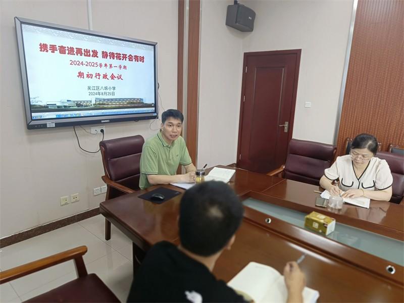 为进一步明确新学期的工作方向,确保新学期各项工作的顺利开展,8月25日上午,八坼小学召开2024-2025学年第一学期期初行政会议,全体行政及干事集中三楼会议室参会,共同规划与交流新学期各部门的工作计划。本次会议由学校党支部书记、校长刘新平主持。