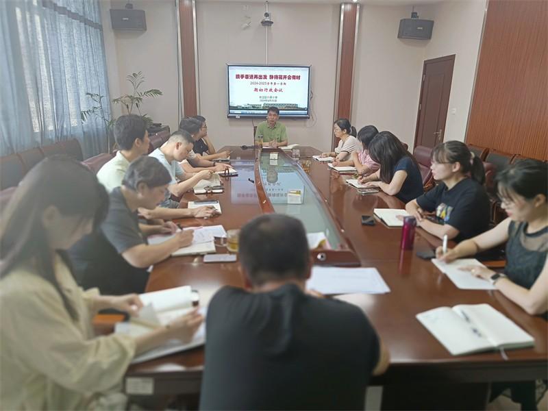 首先,刘校长介绍了本学期人事变动情况及党政人员具体分工,明确各岗位职责,要求制定并落实工作计划,确保学校新学年教育教学的平稳有序。随后,他介绍了期初工作安排,并强调了近期关于校园卫生、环境布置、微信缴费、学生心理调适、暑期作业展评、教师值班、赵勤副校长述职述廉进行民主评议、师德师风期初培训等工作。刘校长希望各科室即日起认真细致地做好学生的报到及开学准备。