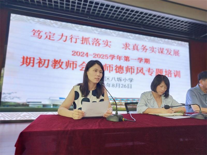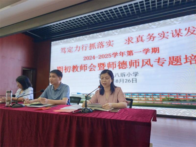 笃定力行抓落实,求真务实谋发展,8月26日下午,八坼小学全体教师集中二楼报告厅召开期初教师会,并组织开展师德师风专题培训,由石菊娥副校长主持。
