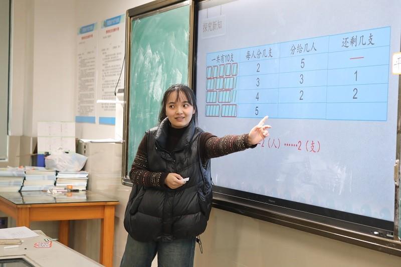 江村实验小学孙才怡老师执教二年级下册《有余数的除法》,孙老师从已有经验出发,通过复习引入新知识,让学生发现原来有剩余也是可以用平均分的。引导学生用分一分、圈一圈亲历探索过程,学习新知,充分调动了学生的主动性和积极性。