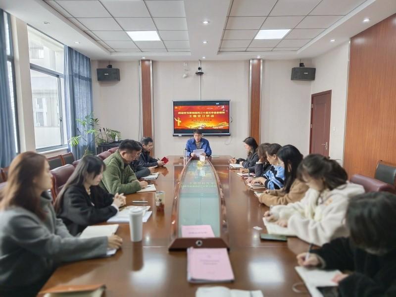 12月13日下午,吴江区八坼小学党支部集中行政楼三楼会议室组织开展“持续学习贯彻党的二十届三中全会精神”主题党日活动暨党员大会,深入学习习近平总书记的讲话精神。全体在职党员参加本次活动,学校党支部书记、校长刘新平主持。