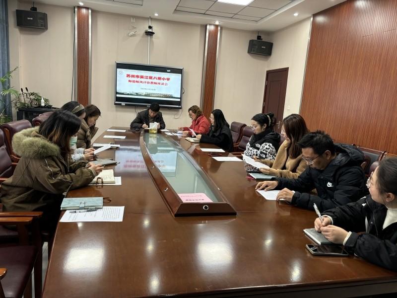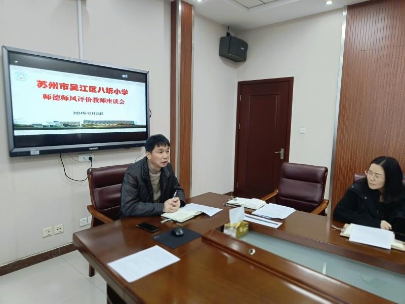 首先,吴主任强调了师德师风建设工作对学校高质量发展考核和教师个人发展的重要影响,希望大家高度重视。随后,她结合近期组织的师德师风调查问卷(学生版)的调查结果进行总结反馈。接着,吴主任宣读了《吴江区八坼小学2024-2025学年第一学期师德评价活动计划》,强调了师德考核领导小组具体人员、考核原则、师德评价六项活动等,要求各位代表积极传达到各办公室,并认真执行。