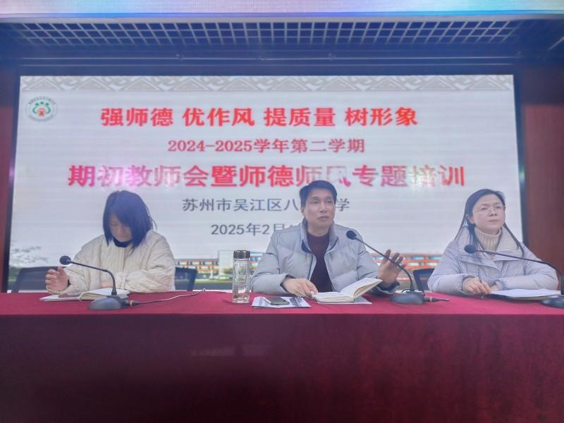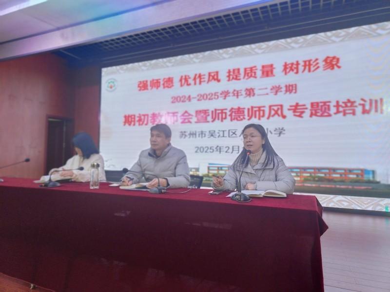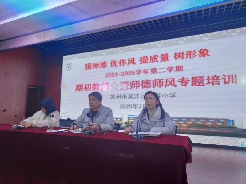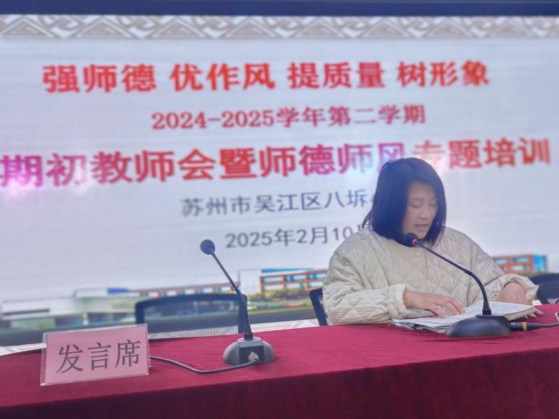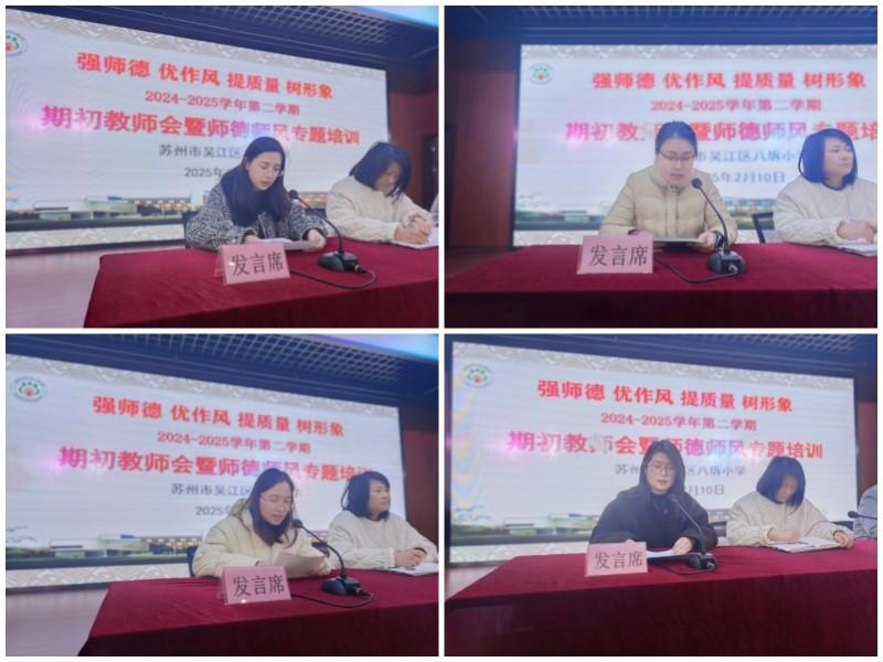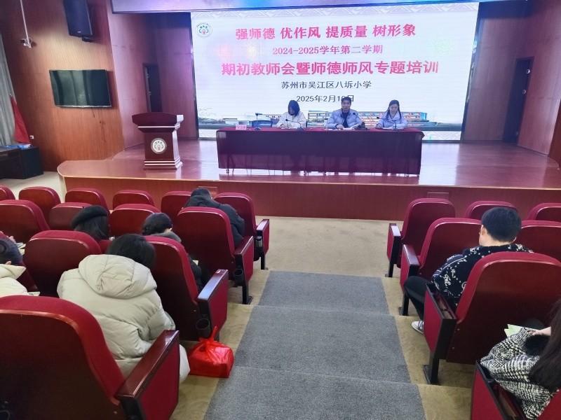 新春伊始,万象更新。2月10日下午,八坼小学全体教师集中二楼报告厅组织召开2024-2025学年第二学期期初教师会,同时开展师德师风专题培训,由石菊娥副校长主持。
