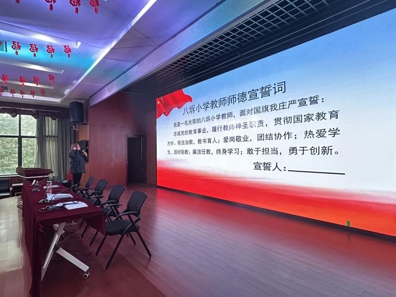 学校师德师风干部吴红英副主任带领全体教师进行师德宣誓,铿锵有力的誓词回荡在校园里,为进一步加强师德师风建设,弘扬高尚师德,树立优良师风许下郑重的承诺。会后,全体教师签署了八坼小学师德承诺书、拒绝有偿补课公开承诺书、规范网络行为承诺书、任课教师安全工作责任书以及教职员工入职承诺书。师德培训活动强化了教师对职业道德的思想认识,牢固树立了“躬耕教坛,强国有我”的志向抱负,不忘初心,行稳致远,准则在心,坚守前行!