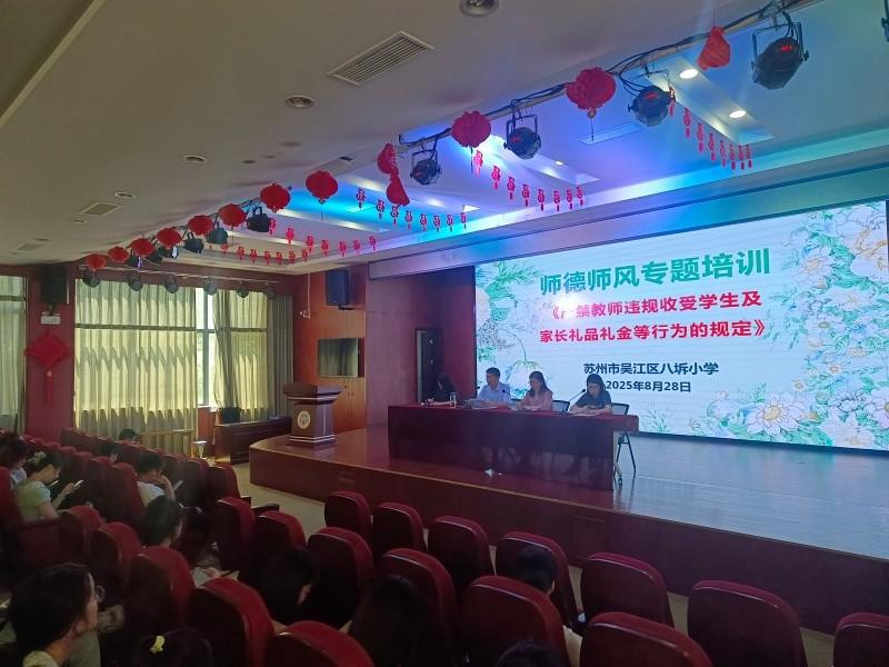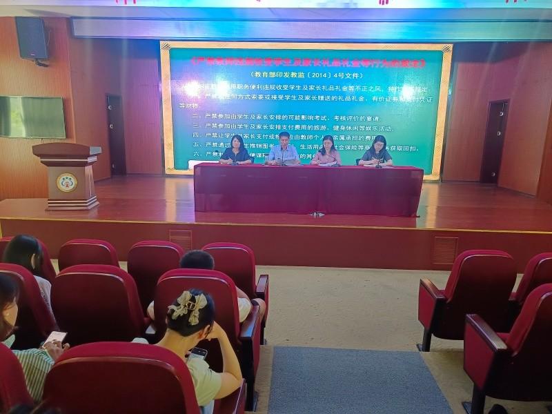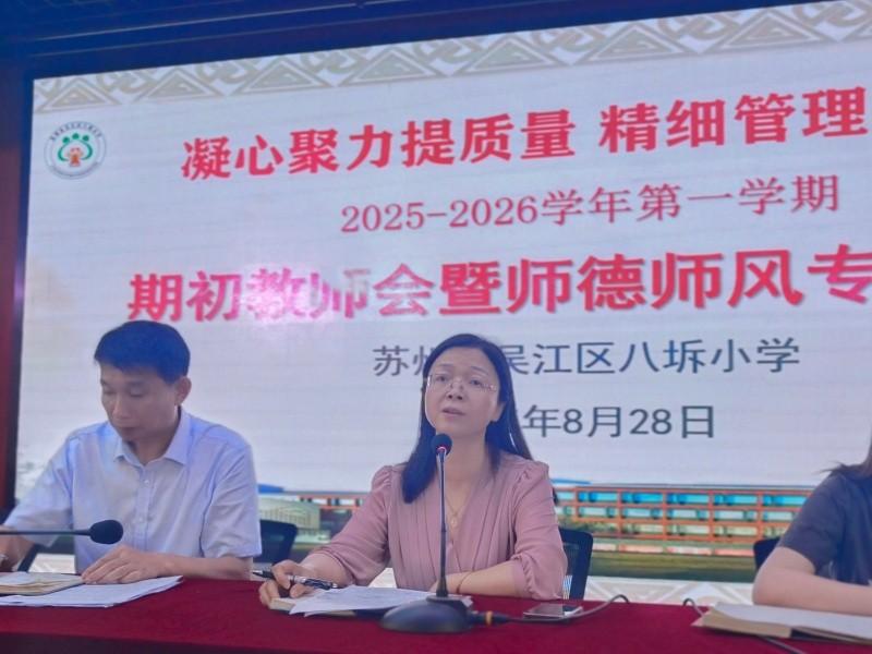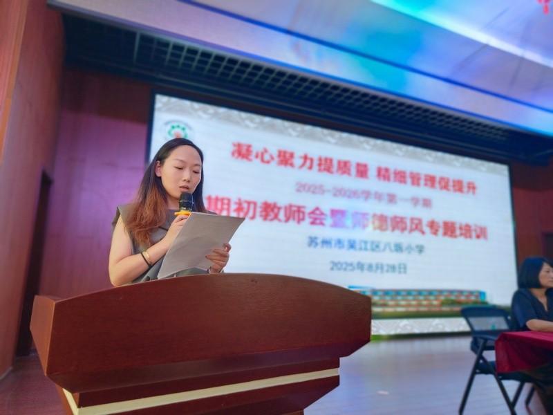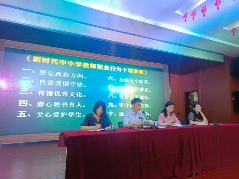 凝心聚力提质量,精细管理促提升,8月28日下午,八坼小学全体教师集中二楼报告厅召开期初教师会,并组织开展师德师风专题培训,由石菊娥副校长主持。