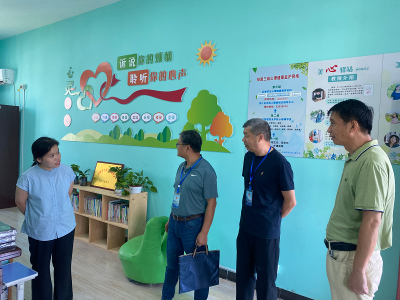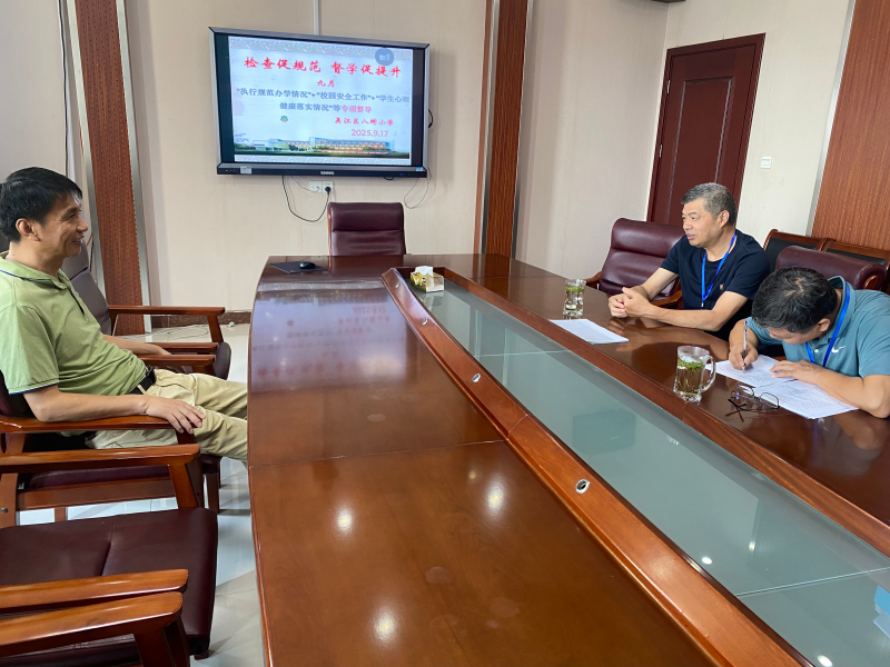 两位督导员在刘新平校长的陪同下,通过巡视校园、随机访谈、现场踏看等形式了解学校作息时间、课程计划、课后延时服务、学生作业负担、课外培训等执行情况。通过学校心理工作室、门卫室等现场查看,查阅台帐资料、师生访谈等形式了解学校校园安全工作、学生心理健康工作等落实情况。
